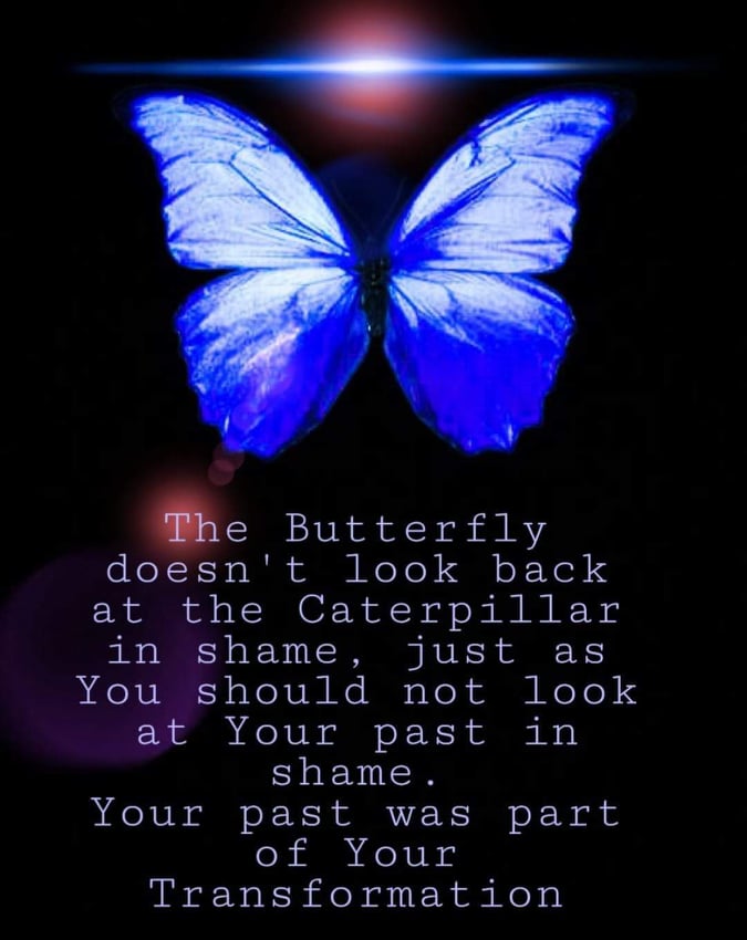 Sommerfuglen ser ikke tilbake på sommerfugllarven i skam, akkurat som du bør ikke se på din fortid i skam. Din fortid var en del av din transformasjon <3